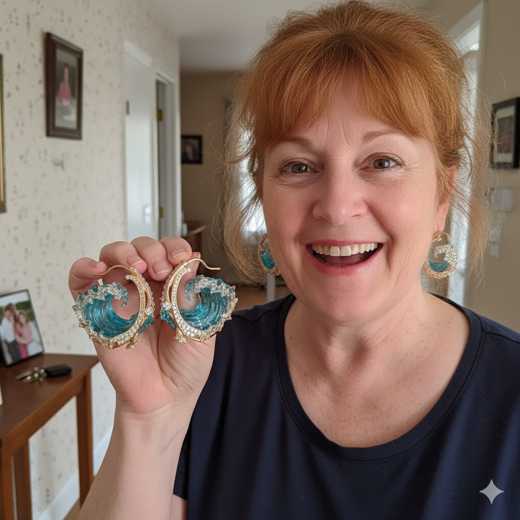 "Absolutely love these earrings. They’re lightweight, comfortable to wear, and feel really well made. They sit nicely without feeling heavy, and they instantly make an outfit feel more put together, even on simple days."