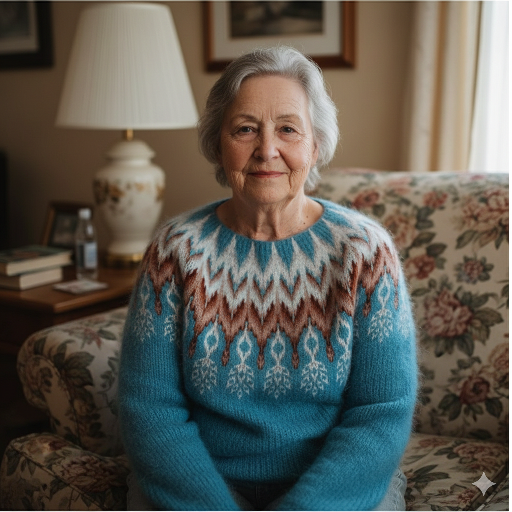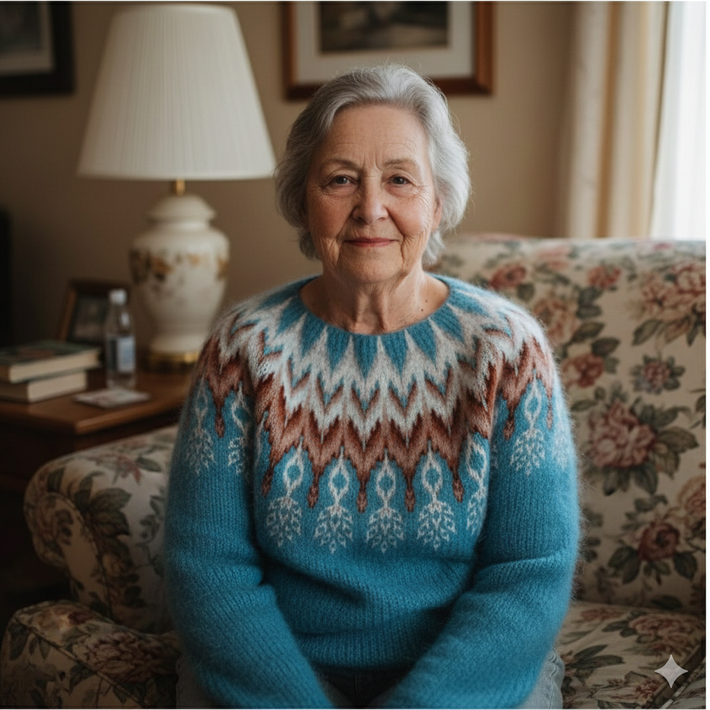 This sweater is so cozy and soft, and I love the colors — they feel cheerful but still subtle. The fit is relaxed without being too loose, and it’s warm enough for a walk outside on a crisp fall day. I’ve had several compliments already!"